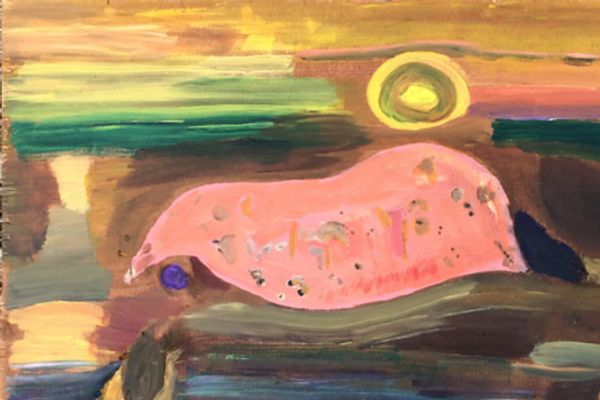 There is nothing wrong with this little painting. My problem in life has been coming up with a title for it. I tried Nice, Decent, Fine, Regular, Normal, OK, Happy, and High Quality before settling on this. It is small (12x16), from 2015 and I don't remember the details. I also completely forgot about it for 7 years. It's not framed, it's not even on a stretched canvas, just a piece of canvas paper. And I can't think of anything to say about the background.