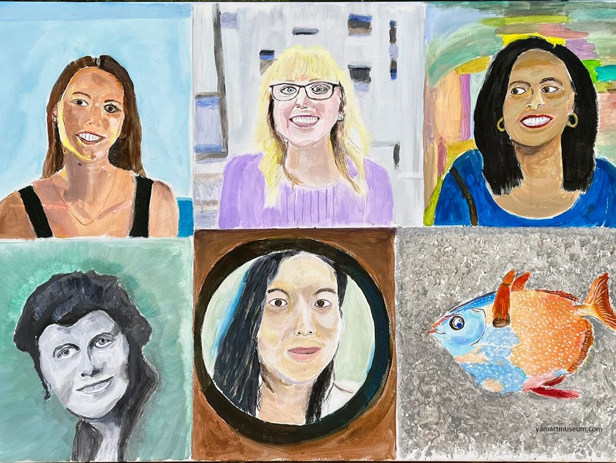 5 lovely women and a fish, all very happy. This is type 2a painting, not a water painting! The fish is out of water and does not even have legs.