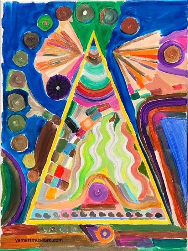 As our Dad was passing away (just a few weeks before the Queen, almost the same age, and this is also in her honor), he reported seeing bright Light, and then one of my sisters had a series of intense visions from the Beyond over the next several nights, to her surprise. This is my depiction of what she described, 18x24 2022.